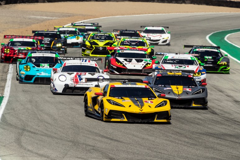 The No. 4 Corvette came in a lap later and came out just ahead of García, despite a trip through the gravel along Laguna Seca’s winding pitlane exit. Undeterred, Tandy slowly but steadily built a gap over García to the end of the race.