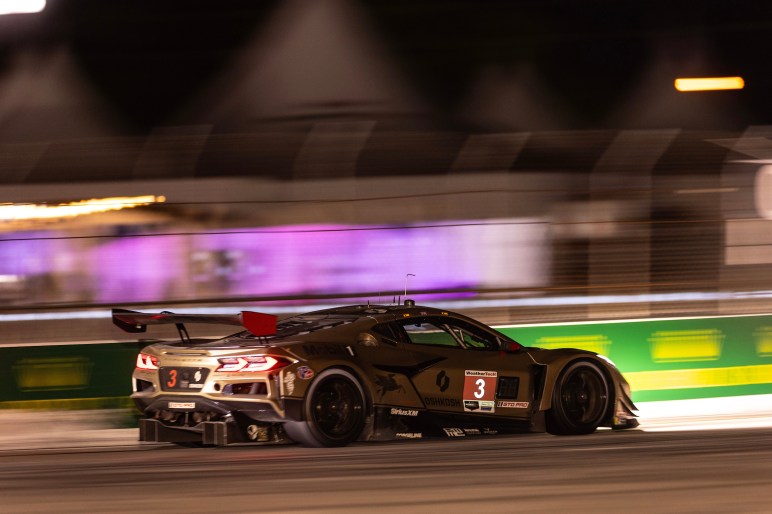 The No. 3 Oshkosh/Mobil 1 Corvette Z06 GT3.R of Antonio Garcia, Alexander Sims and Daniel Juncadella looked as if it would take the honors as the highest-finishing Corvette in the race before being hit from behind and spun off track in the waning laps while running second in GTD PRO.
